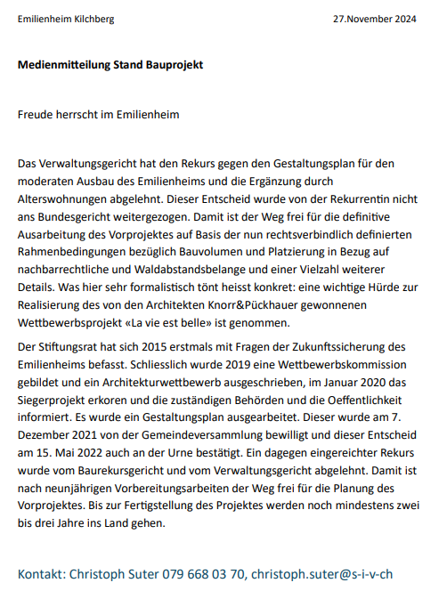Willkommen auf unserem Blog! Hier teilen wir regelmässig Neuigkeiten, Geschichten und Einblicke aus dem Alltag im Emilienheim. Erfahren Sie mehr über unsere Aktivitäten, besondere Ereignisse und die vielfältigen Erlebnisse unserer Bewohner und Mitarbeiter. Lassen Sie sich inspirieren von den berührenden Geschichten und spannenden Beiträgen, die unser Leben im Emilienheim prägen.